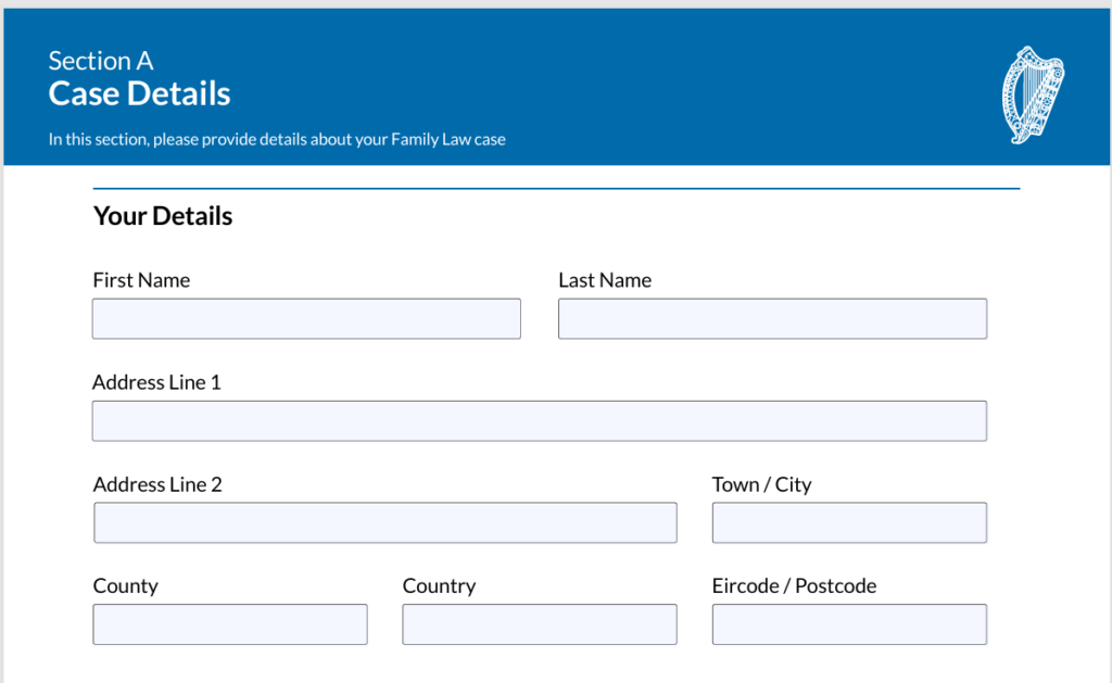 In Section A you need to complete your personal details ie your name and address. If you have been given the Case Number then you can insert it (but it is not necessary to do so). You also need to insert the name of the applicant and the respondent. The person who is bringing the application is called “the applicant” and the other party is called “the respondent”.